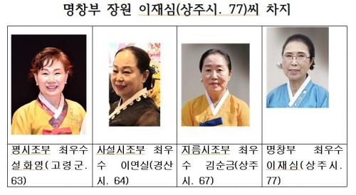 ¸íâºÎ Àå¿ø ¼ö»óÀÚÀÎ ÀÌÀç½É(77. »óÁÖ½Ã) ¸íÀÎÀº ¡°ÀÛ³â°ú ¿ÃÇØ ±Ù 2³â µ¿¾È Äڷγª¿Í µ¶°¨, Æó·Å µîÀ» ¾Î´Ùº¸´Ï ±â·ÂÀÌ ¶³¾îÁö°í ÃѱⰡ Èå·ÁÁ® ¾Çº¸¸¦ º¼ ¾öµÎ°¡ ³ªÁö ¾ÊÀ» ¸¸Å­ Á¤½ÅÀ» ¸ø Â÷¸®´Ù°¡ ¾ÆÀ̰í ÀÌ·¡¼­´Â ¾È µÇ°Ú´Ù. ½ÃÁ¶Ã¢À» Çϸ鼭 ³ª¸¦ ȸº¹Çؾ߰ڴ٠½Í¾î¼­ ½ÃÁ¶Ã¢À» ½ÃÀÛÇߴµ¥, À̹ø ÇÔ¾ÈÀü±¹´ëȸ¿¡¼­ ÃÖ¿ì¼ö»óÀ» ¹Þ°Ô µÇ¾î Á¤¸»·Î ±â»µ¿ä¡± ¶ó¸ç ¼ö»ó¼Ò°¨À» ¹àÇû´Ù.