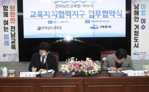 ±è´ëÁß ±³À°°¨Àº ¡°±³À°ÀÚÄ¡Çù·ÂÁö±¸ »ç¾÷Àº Áö¼Ó ¹ßÀü °¡´ÉÇÑ ±³À°»ýŰè Á¶¼º°ú Áö¿ª ±³À°·Â Á¦°í¸¦ À§ÇØ Àü¶ó³²µµ±³À°Ã»°ú ÁöÀÚü °£ ¾÷¹«Çù¾àÀ¸·Î ÁøÇàµÇ´Â »ç¾÷À¸·Î ¿©¼ö½ÃÀÇ Çù·Â ¹× Áö¿ø¿¡ °¨»ç µå¸°´Ù.¡±°í ¹àÇû´Ù.