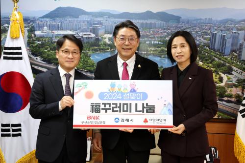 [½Åµ¿¾Æ¹æ¼Û´º½º=ÃÖ¼ÛȱâÀÚ] ±èÇØ½Ã(½ÃÀå ȫſë)´Â 24ÀÏ BNK±ÝÀ¶±×·ì¿¡¼ ¼³À» ¸Â¾Æ ¾î·Á¿î ÀÌ¿ô¿¡°Ô Àü´ÞÇØ ´Þ¶ó¸ç 5¸¸¿ø »ó´çÀÇ º¹²Ù·¯¹Ì »óÀÚ 500°³(2,500¸¸¿ø »ó´ç)¸¦ ±âŹÇß´Ù°í ¹àÇû´Ù.