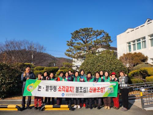 °¡Àå ¸ÕÀú Âü¿©ÇÑ ´Üü´Â »õ¸¶À» ºÎ³àȸ(ȸÀå ¹Ú°æ¼±)·Î ¹«Ã´»ê µî»ê·Î¸¦ Áß½ÉÀ¸·Î µî»ê°´µé°ú »ê¸²¿¬Á¢Áö °æÀÛ³óµé¿¡°Ô ºÒ¹ý ¼Ò°¢ ±ÝÁö¿Í »êºÒ ¿¹¹æ ¾ÈÀü ¼öÄ¢À» ÁýÁß È«º¸ÇÏ´Â ÇÑÆí ÀÎÈ ¹°Áú »çÀü Á¦°Å ÀÛ¾÷ ¹× »ê¸² Á¤È Ȱµ¿µµ º´ÇàÇØ ½Ç½ÃÇß´Ù.