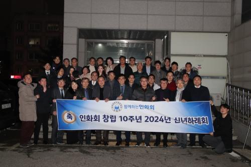 ÀÌÀÍÀç ÀÎÈȸ »ç¹«ÃÑÀåÀÇ »çȸ·Î ÁøÇàµÈ À̳¯ ½Å³âÇÏ·Êȸ¿¡´Â ȸ¿øµé»Ó¸¸ ¾Æ´Ï¶ó ÀÎÇÏ´ë Á¶¸í¿ì ÃÑÀå°ú ±è¿õÈñ ´ë¿ÜºÎÃÑÀå, ¹ÚÇö¼ø ´ë¿ÜÇù·ÂóÀå, ±èÁÖÇü »êÇÐÇù·Â´ÜÀå ¿Ü ´Ù¼öÀÇ ±³¼ö, ±³Á÷¿øµéÀÌ ÇÔ²² ÀÚ¸®Çß´Ù.