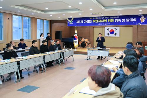 ¹ß´ë½ÄÀº ÁÖ¹ÎÀÚġȸ °æ°úº¸°í, ÁÖ¹ÎÀÚġȸ À§¿ø À§ÃËÀå ¼ö¿©, ÁÖ¹ÎÀÚġȸ À§¿øÀ¸·Î¼ ÀÚ¼¼¿Í ÀÓ¹«¸¦ ´ÙÁö´Â À§¿ø ½Çõ ¼±¾ð¹® ³¶µ¶ µîÀ¸·Î ÁøÇàµÆ´Ù.