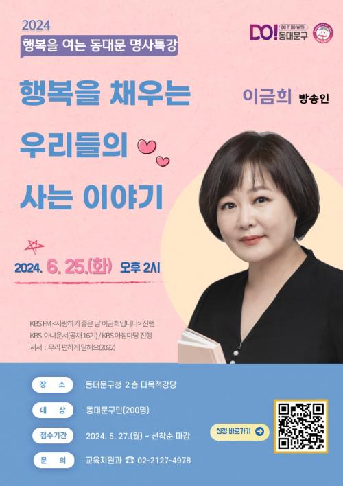 ÀÌÇÊÇü µ¿´ë¹®±¸Ã»ÀåÀº ¡°À̱ÝÈñ °»ç¿ÍÀÇ ¸¸³²À» ÅëÇØ ¸»°ú ¼ÒÅëÀÇ Á߿伺À» ¹è¿ì°í ÀλýÀ» »ì¾Æ°¡´Â ÁöÇý¸¦ ¾òÀ» ¼ö ÀÖ´Â ±âȸ°¡ µÉ °ÍÀ¸·Î ±â´ëÇÑ´Ù. ¾ÕÀ¸·Îµµ °¢ ºÐ¾ßÀÇ Àú¸íÀλçµéÀ» ÃÊûÇÏ¿© ±¸¹Îµé¿¡°Ô ´Ù¾çÇÑ Áö½Ä°ú °æÇèÀ» ³ª´ ¼ö ÀÖµµ·Ï ³ë·ÂÇÒ °Í¡±À̶ó°í ¸»Çß´Ù.