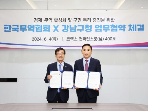 [½Åµ¿¾Æ¹æ¼Û °­³²±¸=À̽ŵ¿±âÀÚ]°­³²±¸°¡ 4ÀÏ ÄÚ¿¢½º¿¡¼­ (»ç)Çѱ¹¹«¿ªÇùȸ(ȸÀå À±Áø½Ä)¿Í °æÁ¦¡¤¹«¿ª Ȱ¼ºÈ­ ¹× ±¸¹Î º¹¸® ÁõÁøÀ» À§ÇÑ ¾÷¹« Çù¾àÀ» ü°áÇß´Ù.