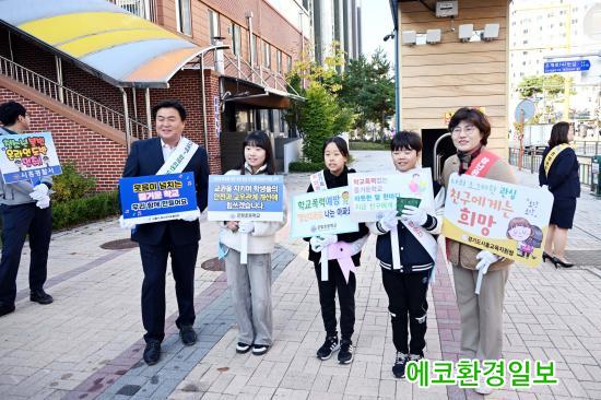 Âü°¡ÀÚµéÀº ¡®Çб³Æø·Â ½ºÅé, »çÀ̹ö¹üÁË ¾Æ¿ô¡¯ µîÀÇ ±¸È£¸¦ ¿ÜÄ¡¸ç Çб³Æø·Â°ú ÇÔ²² ÃÖ±Ù »çȸÀûÀ¸·Î ¹®Á¦°¡ µÇ´Â µöÆäÀÌÅ© µî »çÀ̹ö¹üÁË¿¡ ´ëÇÑ °æ°¢½ÉÀ» ³ôÀÌ°í ¾ÆÀ̵éÀÌ ÇູÇÏ°í ¾ÈÀüÇÑ Çб³ ȯ°æ ¸¸µé±â¿¡ µ¿ÂüÇß´Ù.