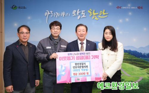 [¿¡ÄÚȯ°æÀϺ¸ °æ³²ÇÔ¾È=À̽ŵ¿±âÀÚ] ÇԾȰæÂû¼­ ¾Èº¸ÀÚ¹®ÇùÀÇȸ´Â 24ÀÏ ¾î·Á¿î ÀÌ¿ô¿¡°Ô ½á´Þ¶ó¸ç 200¸¸ ¿øÀ» ÇԾȱº¿¡ ±âŹÇß´Ù.