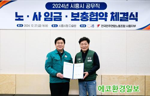 [¿¡ÄÚȯ°æÀϺ¸ ½ÃÈï½Ã=À̽ŵ¿±âÀÚ] ½ÃÈï½Ã´Â Áö³­ 27ÀÏ ½Ãû ´Ù½½¹æ¿¡¼­ ±³¼· ´ëÇ¥³ëµ¿Á¶ÇÕÀÎ Àü±¹¹ÎÁÖ¿¬Çճ뵿Á¶ÇÕ ½ÃÈïÁöºÎ¿Í 2024³âµµ °ø¹«Á÷ Àӱݤýº¸ÃæÇù¾àÀ» ü°áÇß´Ù.