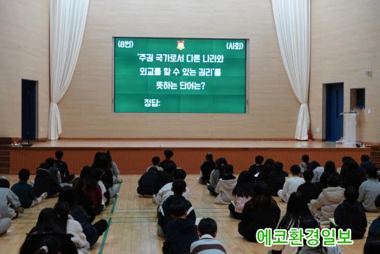°ñµçº§ ÁøÇàÀº ¡Û, ¡¿¿Í ÁÖ°ü½ÄÀ¸·Î ±¸¼ºµÈ ¹®Ç×À» ÄûÁî Çü½ÄÀ¸·Î Á¦½ÃÇÏ¿´À¸¸ç, ´ã´ç ±³»ç¿Í °¢ ÇгâÀÇ ´ãÀÓ ±³»çµéÀÌ ÁøÇà ¹× °¨µ¶À» ¸Ã¾Ò´Ù. Âü°¡ÇÑ ÇлýµéÀº °´ç ¸ð¿© ´ëÇü ȸ鿡 Á¦½ÃµÇ´Â ¹®Ç×À» º¸°í, ÈÀÌÆ®º¸µå¿¡ ´äÀ» Àû¾î ¸ÂÃèÀ» ¶§ µé¾î º¸ÀÌ¸é¼ Áñ°Ì°Ô Âü¿©ÇÏ¿´´Ù. ¾Æ½±°Ô Áß°£¿¡ Å»¶ôÇÑ ÇлýµéÀº ÆÐÀÚ ºÎȰÀüÀ» ÅëÇØ ÀçµµÀüÀÇ ±âȸ¸¦ ¾ò°í ÀÇ¿åÀ» Èû²¯ ³»º¸À̱⵵ ÇÏ¿´´Ù. ÀÌÈÄ¿¡ Å»¶ôÇÑ ÇлýµéÀº ÇÐ±Þ Ä£±¸µéÀ» ÀÀ¿øÇÏ¸ç °´çÀº ÁøÁöÇÔ°ú ¾Æ½¬¿ò ±×¸®°í ȯȣ ¼Ò¸®°¡ °¡µæÇÑ ÃàÁ¦ÀÇ ÀåÀ̱⵵ ÇÏ¿´´Ù.