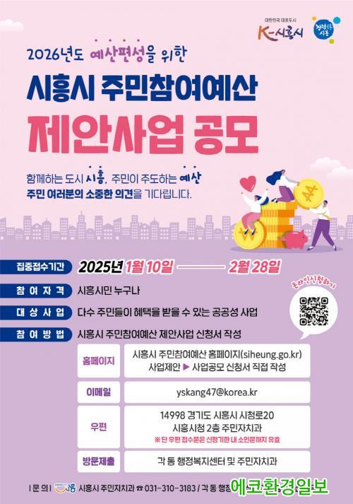 [¿¡ÄÚȯ°æÀϺ¸ ½ÃÈï½Ã=À̽ŵ¿±âÀÚ] ½ÃÈï½Ã´Â 1¿ù 10ÀϺÎÅÍ 2¿ù 28ÀϱîÁö ÁֹεéÀÌ Á÷Á¢ »ç¾÷À» Á¦¾ÈÇÏ´Â ¡®½ÃÈï½Ã ÁÖ¹ÎÂü¿©¿¹»ê Á¦¾È»ç¾÷¡¯ °ø¸ð¸¦ ÃßÁøÇÑ´Ù.