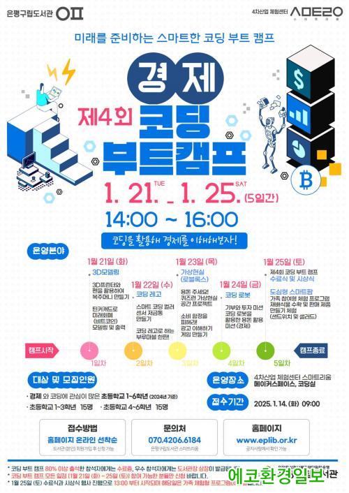 ¡®¹Ì·¡¸¦ ÁغñÇÏ´Â ½º¸¶Æ®ÇÑ ÄÚµù ºÎÆ® Ä·ÇÁ, ÄÚµùÀ» Ȱ¿ëÇØ °æÁ¦¸¦ ÀÌÇØÇØº¸ÀÚ¡¯¸¦ Ç¥¾î·Î ÇÑ´Ù. °æÁ¦ ÀÌ·Ð ÇнÀ°ú ÄÚµù ½Ç½ÀÀ¸·Î ÇлýµéÀÌ ±âÃÊ °æÁ¦ Áö½Ä°ú âÀÇÀû ¹®Á¦ ÇØ°á ´É·ÂÀ» ±â¸¦ ¼ö ÀÖµµ·Ï ±¸¼ºÇß´Ù.