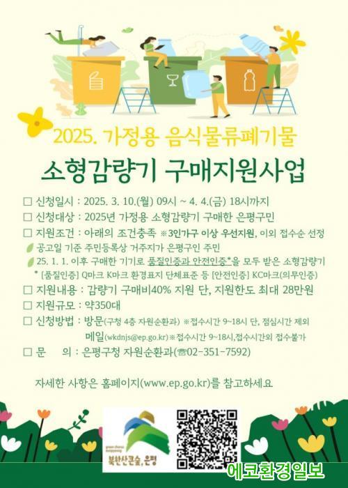ÀÌ¿¡ µû¶ó ÀºÆò±¸´Â °¡Á¤¿ë À½½Ä¹°·ù Æó±â¹° ¼ÒÇü°¨·®±â ±¸¸Å Áö¿ø »ç¾÷À» ÁøÇàÇØ °¡Á¤ÀÇ À½½Ä¹°¾²·¹±â °¨¼Ò¿¡ Àû±Ø Âü¿© Çϱâ·Î Çß´Ù.