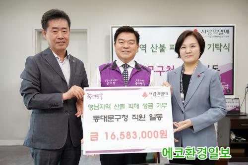[¿¡ÄÚȯ°æÀϺ¸ µ¿´ë¹®±¸=À̽ŵ¿±âÀÚ] ¼¿ï µ¿´ë¹®±¸´Â ¿µ³²±Ç ´ëÇü »êºÒ ÇÇÇØ ÁÖ¹ÎÀ» µ½±â À§ÇØ Á÷¿øµéÀÌ ¸ð±ÝÇÑ ¼º±Ý 16,583,000¿øÀ» »çȸº¹Áö°øµ¿¸ð±Ýȸ ¼¿ïƯº°½Ã Áöȸ¿¡ ±âŹÇß´Ù°í 11ÀÏ ¹àÇû´Ù.
