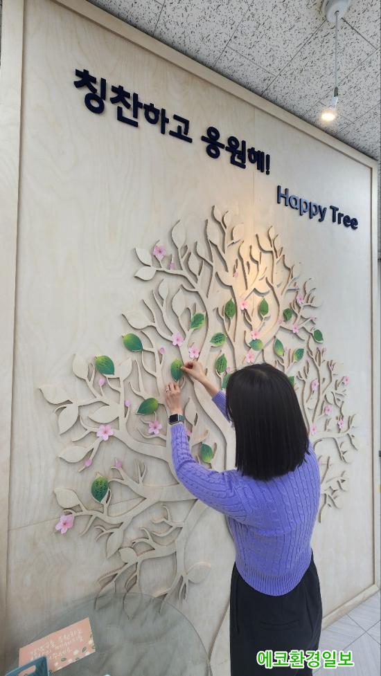 [¿¡ÄÚȯ°æÀϺ¸ °­³²±¸=À̽ŵ¿±âÀÚ] ²ÞÀÌ ¸ðÀÌ´Â µµ½Ã, ¹Ì·¡¸¦ ±×¸®´Â °­³²±¸°¡ ±¸Ã» ¹Î¿ø½Ç¿¡ ÁֹΠÂü¿©Çü ¼ÒÅë °ø°£ ¡®ÇØÇÇÆ®¸®¡¯¸¦ Á¶¼ºÇß´Ù. ÁֹεéÀÌ °­³²±¸ÀÇ ÇàÁ¤ ¼­ºñ½º¿Í Á÷¿ø¿¡ ´ëÇÑ ÄªÂù°ú °Ý·Á ¸Þ½ÃÁö¸¦ Á÷Á¢ ³²±æ ¼ö ÀÖµµ·Ï ¸¸µç ¡®ÇØÇÇÆ®¸®¡¯´Â º»°ü 1Ãþ ¿©±Ç¾È³» µ¥½ºÅ© ¿· º®¸é¿¡ º®È­Çü Æ®¸® ÇüÅ·Π¼³Ä¡µÆ´Ù.