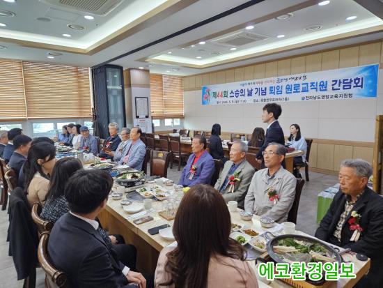 [¿¡ÄÚȯ°æÀϺ¸ Àü³²¿µ¾Ï=À̽ŵ¿±âÀÚ] ¿µ¾Ï±³À°Áö¿øÃ»Àº Á¦44ȸ ½º½ÂÀÇ ³¯À» ¸Â¾Æ ±³À°°è ¿ø·ÎµéÀÇ °æÇè°ú ÁöÇý¸¦ °øÀ¯ÇÏ°í ½º½Â Á¸°æ dzÅ並 Á¶¼ºÇϱâ À§ÇØ 5¿ù 9ÀÏ(±Ý), ¿µ¾Ï Áö¿ª Ãâ½Å ÅðÁ÷ ±³Á÷¿øµéÀ» ÃÊûÇÏ¿© °£´ãȸ¸¦ ¼º°øÀûÀ¸·Î °³ÃÖÇß´Ù.