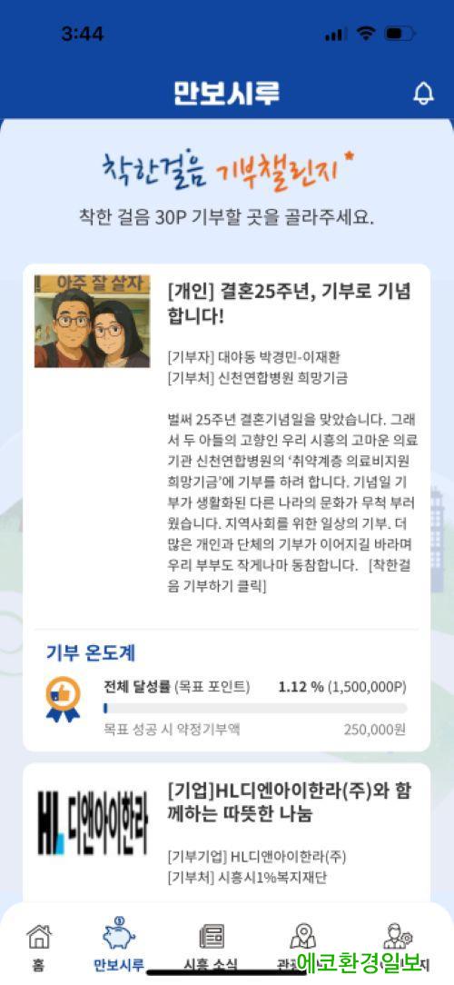 ¡®¸¸º¸½Ã·ç ±âºÎ 縰Áö¡¯´Â ÇÏ·ç 1¸¸ °ÉÀ½ ÀÌ»óÀ» °ÉÀ¸¸é, ½ÃÈï½Ã Áö¿ªÈ­ÆóÀÎ ¸ð¹ÙÀÏ ½Ã·ç 100¿øÀÌ Àû¸³µÇ´Â ¡®¸¸º¸½Ã·ç¡¯ ¾Û(App)¿¡¼­ °ÉÀ½ ¼ö Æ÷ÀÎÆ®¸¦ ±âºÎÇÒ ¼ö ÀÖ´Â ÇÁ·Î±×·¥ÀÌ´Ù. ±âºÎ Âü¿©ÀÚ°¡ ¸ñÇ¥ °ÉÀ½ ¼ö¸¦ ´Þ¼ºÇÏ¸é ±â¾÷À̳ª ±â°üÀÌ ¾àÁ¤ÇÑ ±Ý¾×À» ½ÃÈï½Ã1%º¹ÁöÀç´Ü, ½Åõ¿¬ÇÕº´¿ø µî ±âºÎó¿¡ Àü´ÞÇÏ´Â ¹æ½ÄÀ¸·Î ¿î¿µµÈ´Ù.