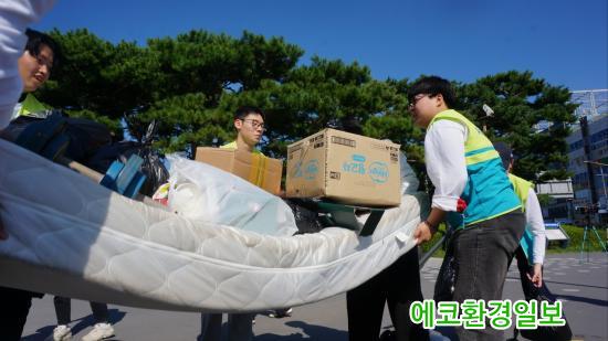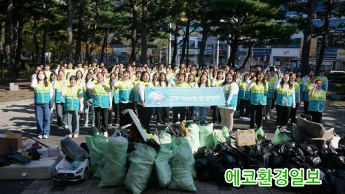¿ÀÀü 11½Ã, °¡ÁÂõ¿¡´Â ºÀ»çȰµ¿À» À§ÇØ ASEZ WAO ȸ¿ø°ú µ¿·á µî 120¿© ¸íÀÌ ¸ð¿´´Ù. À̵éÀº 2km ±¸°£¿¡¼ ÀÏȸ¿ë ÇÃ¶ó½ºÆ½ ÄÅ¡¤»¡´ë, À½½Ä¹° Æ÷ÀåÀç, À½·á ĵ, ºñ´ÒºÀÁö, ´ã¹è²ÇÃÊ µîÀ» ÃÑ 500kg ¼ö°ÅÇß´Ù. ºÀ»çÀÚµéÀÇ ¼Õ±æ·Î ¸ð¾ÆÁø ¾²·¹±â´Â 50L ¿ë·® Á¾·®Á¦ ºÀÅõ 10°³¸¦ °¡µæ ä¿ü´Ù. °¡È£µ¿ ÇàÁ¤º¹Áö¼¾ÅÍ¿¡¼ ¾²·¹±â ºÀÅõ¸¦ Áö¿øÇϸç Ȱµ¿À» ÀÀ¿øÇß´Ù.