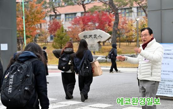 ÀÌ ½ÃÀåÀº Ãß¿î ³¯¾¾ ¼Ó¿¡¼µµ ½ÃÇèÀå ¾ÕÀ» ÁöŰ´Â Çкθð¿Í ±³Á÷¿øµé¿¡°Ô °¨»ç Àλ縦 ÀüÇϸç, ±³¹®À» Åë°úÇÏ´Â ¼öÇè»ýµé¿¡°Ô ¡°±×µ¿¾È È기 ¶¡ÀÇ °á½ÇÀÌ ºûÀ» ¹ßÇÏ´Â ³¯¡±À̶ó¸ç ¡°Çϳ²½Ã´Â ¿©·¯ºÐµéÀÌ ¿À·ÔÀÌ ½ÃÇè¿¡ ÁýÁßÇÒ ¼ö ÀÖµµ·Ï ³¡±îÁö ÇÔ²² Çϰڴ١±°í °Ý·ÁÀÇ ¸»À» °Ç³Þ´Ù.