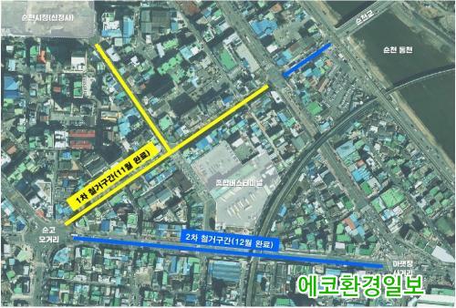 [¿¡ÄÚȯ°æÀϺ¸ ¼øÃµ=±è¿ëÈÆ ±âÀÚ] ¼øÃµ½Ã(½ÃÀå ³ë°ü±Ô)´Â Àåõµ¿ Å͹̳ΠÁÖº¯µµ·Î Àü¼±ÁÖ ÁöÁßÈ­»ç¾÷ÀÇ ¸¶Áö¸· ´Ü°èÀÎ Àü½ÅÁÖ Ã¶°Å ÀÛ¾÷À» ÁøÇàÇØ ¿¬¸»±îÁö ¿Ï·áÇÒ ¿¹Á¤À̶ó°í ¹àÇû´Ù.