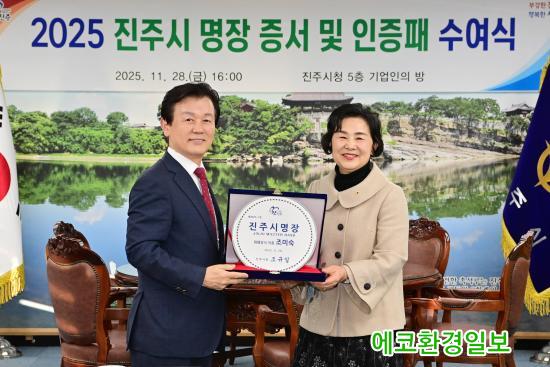 ÁøÁֽô Áö³ 11¿ù 28ÀÏ ½Ãû ±â¾÷ÀÎÀÇ ¹æ¿¡¼ 2025³â ¡®ÁøÁֽà Á¦1È£ ¸íÀ塯À¸·Î ¼±Á¤µÈ Á¶¹Ì¼÷ ´ëÇ¥¿¡°Ô ÀÎÁõ¼¿Í ÀÎÁõÆÐ, ±â¼úÀå·Á±Ý(2³â°£ 400¸¸ ¿ø)À» ¼ö¿©Çß´Ù.