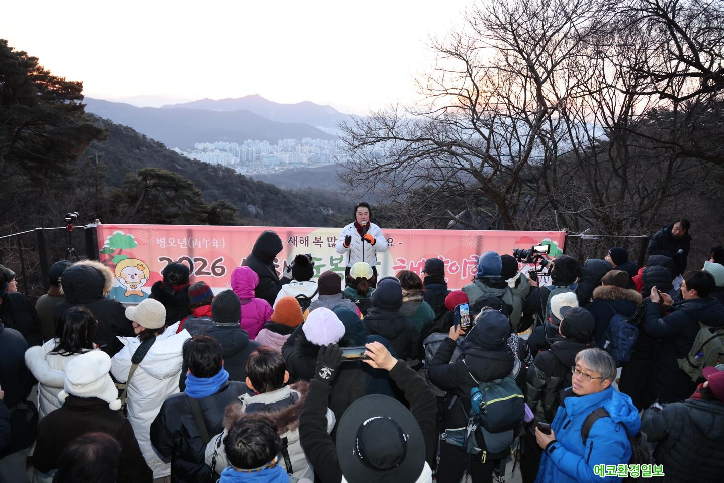 [¿¡ÄÚȯ°æÀϺ¸ µµºÀ±¸=À̽ŵ¿±âÀÚ] ¡®ºÓÀº ¸»ÀÇ ÇØ¡¯ º´¿À³â(ܰçíÒ´) »õÇØ°¡ ¹à¾Ò´Ù. 2026³â ù³¯ÀÎ 1¿ù 1ÀÏ 500¿© ¸íÀÇ ±¸¹ÎÀº ÀÏÃâÀ» º¸±â À§ÇØ µµºÀ»êÀ» ã¾Ò´Ù. À̳¯ ¼¿ï µµºÀ±¸´Â µµºÀ»ê õÃà»ç¿¡¼ ÇÑ ÇØ ¼Ò¸ÁÀ» ±â¿øÇÏ´Â ÇØ¸ÂÀÌ Çà»ç¸¦ °³ÃÖÇß´Ù. Çà»ç¿¡¼´Â ½ÄÀü°ø¿¬, »õÇØ±â¿ø, Ä«¿îÆ®´Ù¿î, ¸¸¼¼»ïâ µîÀÌ ÁøÇàµÆ´Ù.