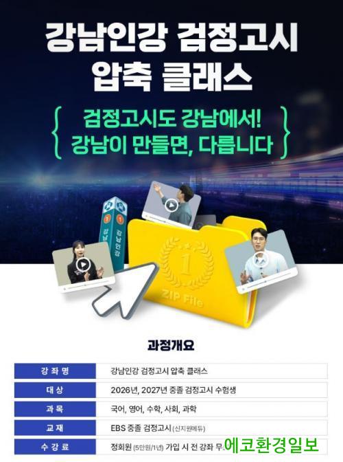 [¿¡ÄÚȯ°æÀϺ¸ °­³²±¸=À̽ŵ¿±âÀÚ] ²ÞÀÌ ¸ðÀÌ´Â µµ½Ã, ¹Ì·¡¸¦ ±×¸®´Â °­³²±¸°¡ ¿Â¶óÀÎ ÇнÀ Ç÷§Æû °­³²Àΰ­À» ÅëÇØ ÁßÁ¹ °ËÁ¤°í½Ã ¼öÇè»ýÀ» À§ÇÑ ¡®°ËÁ¤°í½Ã ¾ÐÃà Ŭ·¡½º¡¯¸¦ »õ·Ó°Ô ¼±º¸ÀδÙ. ÇØ´ç °­Á´ 2026³â 1¿ù 5ÀϺÎÅÍ °­³²Àΰ­ ȨÆäÀÌÁö¸¦ ÅëÇØ ¼ö°­ÇÒ ¼ö ÀÖ´Ù.