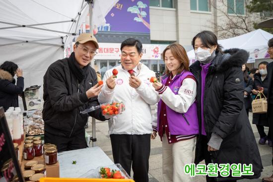 [¿¡ÄÚȯ°æÀϺ¸ µ¿´ë¹®±¸=À̽ŵ¿±âÀÚ] µ¿´ë¹®±¸´Â 5ÀÏ ±¸Ã» ¾Õ ¹Ì·¡±¤Àå¿¡¼ ¼³¸ÂÀÌ ³ó¼ö»ê¹° Á÷°Å·¡ÀåÅ͸¦ °³ÃÖÇϰí, Àü±¹ °¢ÁöÀÇ ¿ì¼ö ³óƯ»ê¹°À» ÇÕ¸®ÀûÀÎ °¡°Ý¿¡ ¼±º¸¿´´Ù.