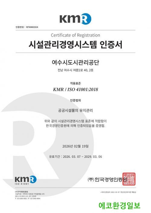 °ø´ÜÀº Áö³ 11ÀϺÎÅÍ 12ÀϱîÁö ¾çÀϰ£ ÁøÇàµÈ ÇöÀå ½É»ç¸¦ ÅëÇØ °ø¿µÁÖÂ÷Àå, Àå¾ÖÀα¹¹ÎüÀ°¼¾ÅÍ, Áø³²¼ö¿µÀå, ȯ°æÀÚ¿ø»ç¾÷¼Ò µî ÁÖ¿ä »ç¾÷¼ÒÀÇ À¯Áö°ü¸® ½Ã½ºÅÛÀ» ¸é¹ÐÈ÷ °ËÁõ¹Þ¾Ò´Ù. À̹ø ÀçÀÎÁõÀº 2023³â ÃÖÃÊ Ãëµæ ÀÌÈÄ 3³â ÁÖ±âÀÇ Á¤±â °»½Å ½É»ç¸¦ ÅëÇØ ÀÌ·ïÁ³À¸¸ç, ½Ã¼³ °ü¸® ÇÁ·Î¼¼½ºÀÇ ÀûÁ¤¼º°ú ¹ý±Ô Áؼö ½ÇÅ µî Àü Ç׸ñ¿¡¼ ¿ì¼öÇÑ Æò°¡¸¦ ¹Þ¾Æ ÀÎÁõ À¯È¿±â°£À» 2029³â 3¿ù±îÁö ¿¬ÀåÇÏ°Ô µÆ´Ù.