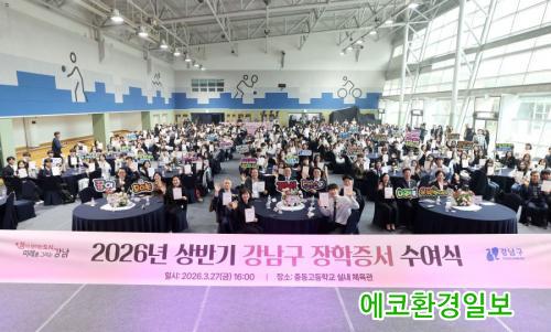 [¿¡ÄÚȯ°æÀϺ¸ °³²±¸=À̽ŵ¿±âÀÚ] ²ÞÀÌ ¸ðÀÌ´Â µµ½Ã, ¹Ì·¡¸¦ ±×¸®´Â °³²±¸°¡ Áö³ 27ÀÏ Áßµ¿°íµîÇб³ ½Ç³»Ã¼À°°ü¿¡¼ ¡®2026³â »ó¹Ý±â °³²±¸ ÀåÇÐÁõ¼ ¼ö¿©½Ä¡¯À» ¿°í ÀåÇлý 202¸í¿¡°Ô ÃÑ 3¾ï7200¸¸ ¿øÀÇ ÀåÇбÝÀ» Àü´ÞÇß´Ù.