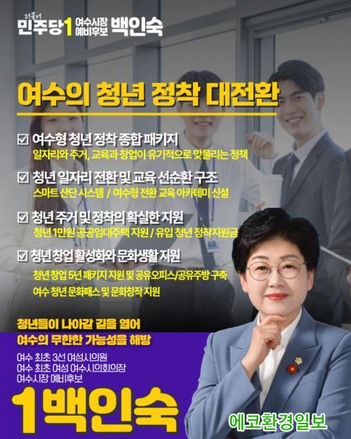 [¿¡ÄÚȯ°æÀϺ¸ Àü³²¿©¼ö=±è±â³²±âÀÚ] ¹éÀμ÷ ´õºÒ¾î¹ÎÁÖ´ç ¿©¼ö½ÃÀå ¿¹ºñÈ帴 "û³âÀÌ ºüÁ®³ª°¡¸é ¿©¼öÀÇ ¹Ì·¡µµ ÇÔ²² ºüÁ®³ª°£´Ù"¸ç ÁÖ°Å¡¤ÀÏÀÚ¸®¡¤Ã¢¾÷¡¤Á¤Âø¡¤¹®È­¸¦ ¹­Àº 5´ë û³âÁ¤Ã¥À» ¹ßÇ¥Çß´Ù.