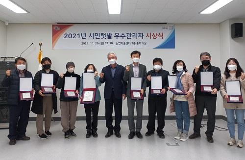 [¿¡ÄÚȯ°æÀϺ¸´º½º=Á¤ÁöÀ± ±âÀÚ] ÁøÁֽô Áö³­ 26ÀÏ ¿ÀÈÄ 5½Ã 30ºÐ ³ó¾÷±â¼ú¼¾ÅÍ È¸Àǽǿ¡¼­ ¡®2021³â ½Ã¹ÎÅÔ¹ç ¿ì¼ö°ü¸®ÀÚ ½Ã»ó½Ä¡¯À» °³ÃÖÇß½À´Ï´Ù. À̹ø ½Ã»óÀº 6°³¿ù°£ ¾ö°ÝÇÑ ½É»ç¸¦ °ÅÃÄ ½Ã¹ÎÅÔ¹çÀ» ¼º½ÇÇÏ°Ô °ü¸®ÇÑ 10¸íÀ» ¼±¹ß¡¤½Ã»óÇÏ´Â °ÍÀ¸·Î, ¿ì¼ö°ü¸®¡¦