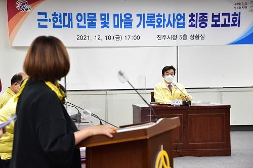 [¿¡ÄÚȯ°æÀϺ¸´º½º=Á¤ÁöÀ± ±âÀÚ] ÁøÁֽô Áö³­ 10ÀÏ ¿ÀÈÄ ÁøÁÖ½Ãû »óȲ½Ç¿¡¼­ ¡®±Ù¡¤Çö´ë ¹®È­ Àι° ¹× ¸¶À» ±â·ÏÈ­ »ç¾÷¡¯ÃÖÁ¾ º¸°íȸ¸¦ ¿­¾ú½À´Ï´Ù. ±â·ÏÈ­ »ç¾÷Àº Áö¿ªÀÇ ¼ÒÁßÇÑ ÀÚ·á¿Í »îÀÇ À̾߱âµéÀÌ »ç¶óÁö±â Àü Áö¿ª ¹®È­ÀÚ»êÀ» È®º¸¡¤±â·ÏÇÏ¿© ÁøÁÖ½ÃÀÇ ¡¦