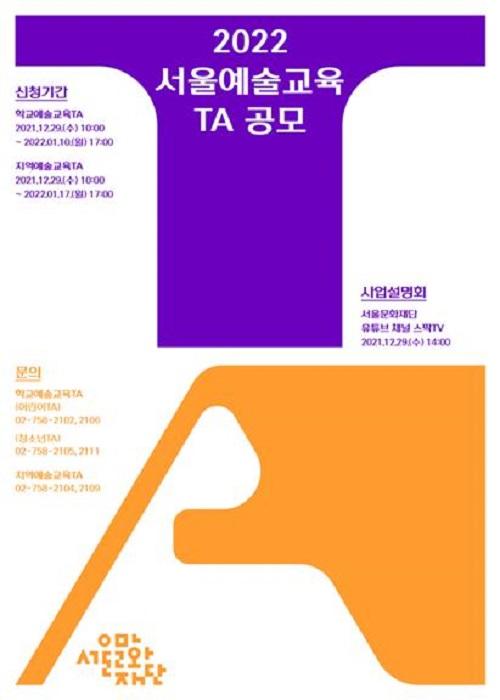 [¿¡ÄÚȯ°æÀϺ¸´º½º=Á¤ÁöÀ± ±âÀÚ] ¼­¿ï¹®È­Àç´Ü(´ëÇ¥ÀÌ»ç ÀÌâ±â)Àº ¼­¿ï½Ã³» Çб³¿Í Áö¿ª °ÅÁ¡ Ű¿ò¼¾ÅÍ µî¿¡¼­ ¿¹¼ú ¼ö¾÷À» ÁøÇàÇÒ ±³À°¿¹¼ú°¡(Teaching Artist, TA)¿Í ±³À°´Üü¸¦ ¼±¹ßÇÏ´Â 2022³â ¼­¿ï¿¹¼ú±³À°»ç¾÷ °ø¸ð¸¦ 27ÀÏ(¿ù)ºÎÅÍ ³»³â 2¿ù 16ÀÏ(¼ö)±îÁö ÁøÇàÇÑ¡¦
