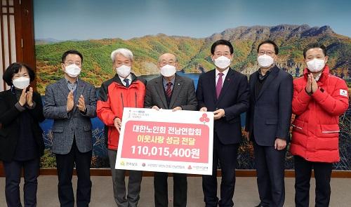 [¿¡ÄÚȯ°æÀϺ¸´º½º=Á¤ÁöÀ± ±âÀÚ] Àü¶ó³²µµ´Â 17ÀÏ ¿ÀÀü µµÃ»¿¡¼­ »ç´Ü¹ýÀÎ ´ëÇѳëÀÎȸ Àü³²¿¬ÇÕȸ ȸ¿ø µîÀÌ ¸ð±ÝÇÑ 1¾ï 1õ¸¸ ¿øÀ» Äڷγª19 ±Øº¹ ¼º±ÝÀ¸·Î ±âŹ¹Þ¾Ò½À´Ï´Ù. À̹ø ¼º±ÝÀº Àü³²³ëÀÎȸ¿¡¼­ ½Ã±º Áöȸ¿Í ÁÖ¿ä °æ·Î´ç µî 1õ600°³¼Ò¿¡ ¸ð±ÝÇÔÀ» ¼³Ä¡ÇØ ¡¦