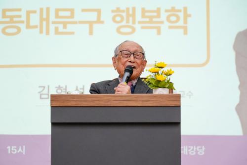 [¿¡ÄÚȯ°æÀϺ¸ µ¿´ë¹®=À̽ŵ¿±âÀÚ]¼­¿ï µ¿´ë¹®±¸´Â 27ÀÏ(È­) ±èÇü¼® ±³¼ö(¿¬¼¼´ëÇб³ öÇаú ¸í¿¹±³¼ö)¸¦ ÃÊÃ»ÇØ ¡®100¼¼ öÇÐÀÚ¿¡°Ô ¹è¿ì´Â µ¿´ë¹®±¸ ÇູÇС¯À» ÁÖÁ¦·Î ¿ÃÇØ ù ¹øÂ° ¡®ÇູÀ» ¿©´Â µ¿´ë¹® ¸í»çƯ°­¡¯À» ÁøÇàÇß´Ù. ±è ±³¼ö´Â À̳¯ ÀڽŠ¾Õ¿¡ ¸ðÀÎ 5¡¦