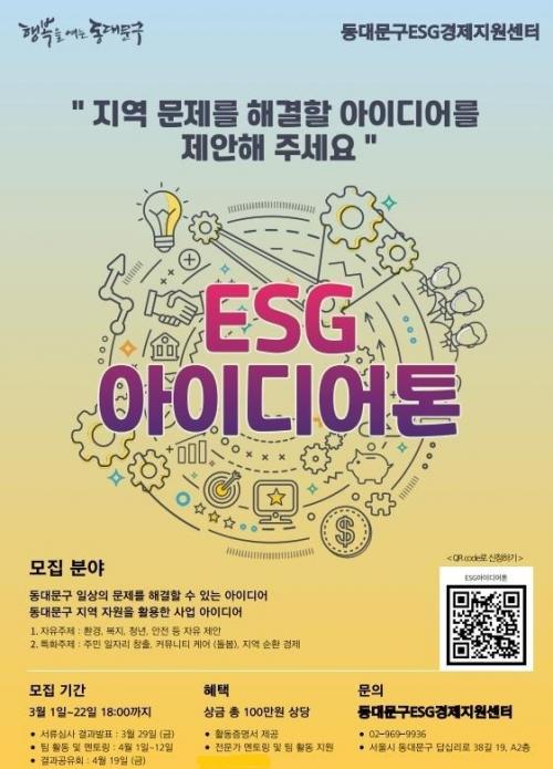 [¿¡ÄÚȯ°æÀϺ¸ µ¿´ë¹®=À̽ŵ¿±âÀÚ]¼­¿ï µ¿´ë¹®±¸°¡ ESG°æÁ¦Áö¿ø¼¾ÅÍ¿¡¼­ ÀÏ»óÀÇ Áö¿ª¹®Á¦¸¦ ÇØ°áÇϴ âÀÇÀûÀÎ ¾ÆÀ̵ð¾î¸¦ ¸ðÁýÇÏ´Â ¡®2024³â ESG ¾ÆÀ̵ð¾îÅæ¡¯À» °³ÃÖÇÑ´Ù. ¡®¾ÆÀ̵ð¾îÅæ¡¯À̶õ ¾ÆÀ̵ð¾î(idea)¿Í ¸¶¶óÅæ(marathon)ÀÇ ÇÕ¼º¾î·Î, Á¦ÇÑµÈ ½Ã°£ ³»¿¡ ÆÀ ¡¦