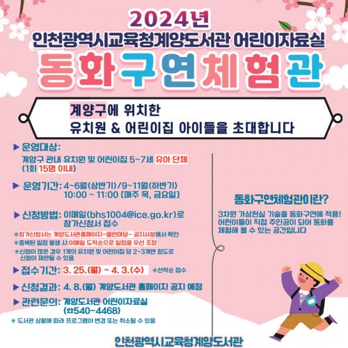 [¿¡ÄÚȯ°æÀϺ¸ ÀÎõ= À±¹Î½Ä ±âÀÚ]ÀÎõ±¤¿ª½Ã±³À°Ã»°è¾çµµ¼­°ü °üÀå ¿ÀÅÂȯÀº °è¾ç±¸ °ü³» À¯Ä¡¿ø°ú ¾î¸°ÀÌÁý À¯¾Æ¸¦ ´ë»óÀ¸·Î Á÷Á¢ µ¿È­ ¼Ó ÁÖÀΰøÀÌ µÇ¾îº¸°í üÇèÇÒ ¼ö ÀÖ´Â ¡¸µ¿È­±¸¿¬Ã¼Çè°ü¡¹À» 4¿ùºÎÅÍ 11¿ù±îÁö ¸ÅÁÖ ¸ñ, ±Ý ¿ÀÀü 10½ÃºÎÅÍ 1½Ã°£ µ¿¾È ¿î¿µÇÑ´Ù.¡¦