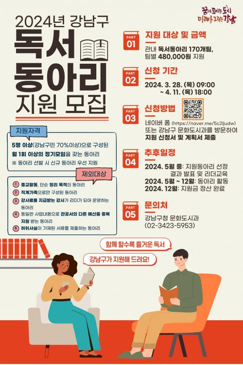 [¿¡ÄÚȯ°æÀϺ¸ °­³²=À̽ŵ¿±âÀÚ]°­³²±¸°¡ ¿ÃÇØ 170°³ µ¶¼­µ¿¾Æ¸®¿¡ 8160¸¸¿øÀ» Áö¿øÇÑ´Ù. ÀÌ Áö¿ø»ç¾÷¿¡ Âü¿©ÇÒ µ¶¼­µ¿¾Æ¸®¸¦ ÀÌ´Þ 11ÀϱîÁö ¸ðÁýÇÑ´Ù. µ¿¾Æ¸®´Â °­³²±¸¿¡¼­ ¿ù 1ȸ ÀÌ»ó Ȱµ¿ÇÏ´Â 5ÀÎ ÀÌ»óÀÇ µ¶¼­µ¿¾Æ¸®¸¦ ´ë»óÀ¸·Î Çϸç, ±¸¼º¿ø °¡¿îµ¥ °­³²±¸¹ÎÀÇ¡¦