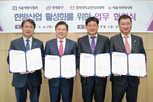 [¿¡ÄÚȯ°æÀϺ¸ µ¿´ë¹®±¸=À̽ŵ¿±âÀÚ]¼­¿ï µ¿´ë¹®±¸(±¸Ã»Àå ÀÌÇÊÇü)´Â 4ÀÏ ¿ÀÀü ¼­¿ï¾à·É½ÃÇùȸ, °æÈñ´ëÇб³ÇÑÀǰú´ëÇÐ, ¼­¿ïƯº°½ÃÇÑÀÇ»çȸ¿Í Çѹæ»ê¾÷ Ȱ¼ºÈ­¸¦ À§ÇÑ ¾÷¹« Çù¾àÀ» ü°áÇß´Ù°í ¹àÇû´Ù. À̳¯ Çù¾à½Ä¿¡´Â ÀÌÇÊÇü µ¿´ë¹®±¸Ã»ÀåÀ» ºñ·ÔÇØ ¼º°üÈ£ ¼­¿ï¾à·É¡¦