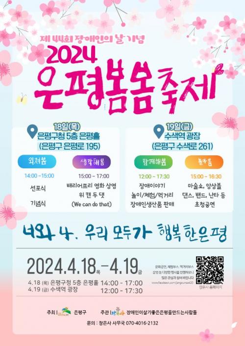[¿¡ÄÚȯ°æÀϺ¸ ÀºÆò±¸=À̽ŵ¿±âÀÚ]ÀºÆò±¸´Â ¿À´Â 18ÀϺÎÅÍ 19ÀϱîÁö ÀºÆò±¸Ã»°ú ¼ö»ö¿ª ±¤Àå¿¡¼­ Àå¾ÖÀΰú ºñÀå¾ÖÀÎÀÌ ÇÔ²² Âü¿©ÇÏ´Â ¼ÒÅë°ú È­ÇÕÀÇ ÀåÀÎ Á¦44ȸ Àå¾ÖÀÎÀÇ ³¯ ±â³ä ¡®ÀºÆòº½º½ÃàÁ¦¡¯¸¦ °³ÃÖÇÑ´Ù°í ¹àÇû´Ù. 18ÀÏ¿¡´Â ÀºÆò±¸Ã» 5Ãþ ÀºÆòȦ¿¡¼­ Àå¾ÖÀÎÀ¸¡¦