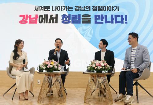 [¿¡ÄÚȯ°æÀϺ¸=À̽ŵ¿±âÀÚ]²ÞÀÌ ¸ðÀÌ´Â µµ½Ã, ¹Ì·¡¸¦ ±×¸®´Â °­³²±¸(±¸Ã»Àå Á¶¼º¸í)°¡ 9¿ù 3ÀÏ Àú³á 6½Ã ±¸Ã» 1Ãþ ·Îºñ¿¡¼­ ¡®°­³²¿¡¼­ û·ÅÀ» ¸¸³ª´Ù¡¯ ¶óÀ̺êŬ·¡½º¸¦ °³ÃÖÇß´Ù. ÃÖżº º°º°Çѱ¹»ç ¿¬±¸¼ÒÀå, ¹æ¼ÛÀÎ ´Ù´Ï¿¤ ¸°µ¥¸¸, ÀÌÇý¼º ¾Æ³ª¿î¼­°¡ û·ÅÀ» Áß½ÉÀ¸·Î¡¦