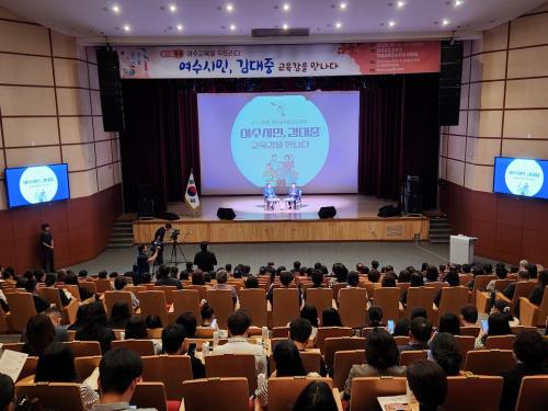 [¿¡ÄÚȯ°æÀϺ¸ ¿©¼ö½Ã-À̽ŵ¿±âÀÚ] Àü¶ó³²µµ¿©¼ö±³À°Áö¿øÃ»ÀÌ 10¿ù 18ÀÏ Àü¶ó³²µµ±³À°Ã»Çлý±³À°¹®È­È¸°ü¿¡¼­ ±è´ëÁß ±³À°°¨ ÃÊû ¿¡µàÄܼ­Æ®¡¸e-ëåÅåÅå, ¿©¼ö±³À°À» µÎµå¸®´Ù¡¹¸¦ °³ÃÖÇß´Ù. À̹ø Çà»ç´Â Àü¶ó³²µµ¿©¼ö ¹Î°ü»êÇÐ ±³À°Çù·ÂÀ§¿øÈ¸¿Í ¿©¼öÇкθðȸ¿¬ÇÕ¡¦