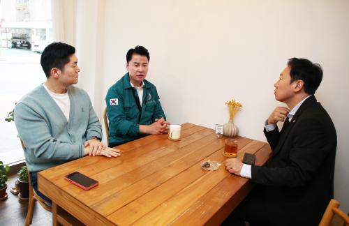 [¿¡ÄÚȯ°æÀϺ¸ µµºÀ±¸=À̽ŵ¿±âÀÚ] ¿À¾ð¼® µµºÀ±¸Ã»ÀåÀº Áö³­ 11¿ù 1ÀÏ µµºÀ±¸ ¼ÒÀç ÀüÅë½ÃÀå¿¡¼­ ±èÀç¼· ±¹È¸ÀÇ¿ø°ú ¹Ú¼ö¹Î ±¹È¸ÀÇ¿øÀ» ¸¸³µ´Ù. À̹ø ¸¸³²Àº µµºÀ±¸ Çö¾È°ú Áö¿ª¹ßÀüÀ» ³íÀÇÇϱâ À§ÇØ ¸¶·ÃµÆ´Ù. ¸¸³² ¹è°æ¿¡´Â ¿À¾ð¼® ±¸Ã»Àå°ú Áö¿ª±¸ ±¹È¸ÀÇ¿øÀÎ ±è¡¦