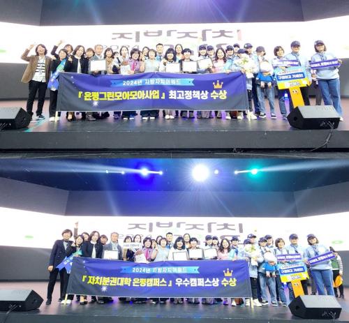 [¿¡ÄÚȯ°æÀϺ¸ ÀºÆò±¸=À̽ŵ¿±âÀÚ] ÀºÆò±¸´Â ¡®2024³â Áö¹æÀÚÄ¡ ¾î¿öµå¡¯ °ø¸ðÀü¿¡¼­ ¡®ÀºÆò±×¸°¸ð¾Æ¸ð¾Æ¡¯°¡ ÃÖ°íÁ¤Ã¥»ó Àº»óÀ» ¼ö»óÇÏ´Â µî ¡®3°ü¿Õ¡¯À» Äè°ÅÇß´Ù°í ¹àÇû´Ù. ¿ÃÇØ·Î 5ȸ°ÀÎ ¡®Áö¹æÀÚÄ¡ ¾î¿öµå¡¯´Â Áö¹æÀÚÄ¡¸¦ À§ÇÑ »ç¶÷°ú Áö¿ªÀÚ¿øÀ» ½Ã»óÇÏ´Â Çà»ç¡¦