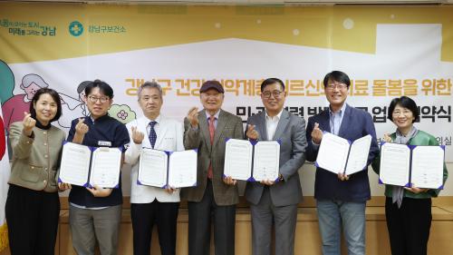 [¿¡ÄÚȯ°æÀϺ¸ °­³²±¸=À̽ŵ¿±âÀÚ] ²ÞÀÌ ¸ðÀÌ´Â µµ½Ã, ¹Ì·¡¸¦ ±×¸®´Â °­³²±¸°¡ Áö³­ 13ÀÏ ¼­¿ï36ÀÇ¿ø, 365¿­¸°°¡Á¤ÀÇÇаúÀÇ¿ø, ¼­¿ï¿¬¼¼ÀÇ¿ø, ¿¬¼¼¶óÆÄÀÇ¿ø, ¿¬¼¼ÀçȰÀÇÇаúÀÇ¿ø µî 5°³ ÀÇ·á±â°ü°ú ¡®°Ç°­ Ãë¾à°èÃþ ÀÇ·áµ¹º½À» À§ÇÑ ¹Î‧°ü Çù·Â ¹æ¹®Áø·á ¾÷¹«Çù¾à¡¦