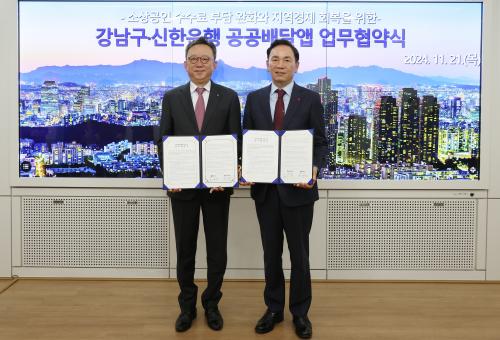 [¿¡ÄÚȯ°æÀϺ¸ °­³²±¸=À̽ŵ¿±âÀÚ] ²ÞÀÌ ¸ðÀÌ´Â µµ½Ã, ¹Ì·¡¸¦ ±×¸®´Â °­³²±¸°¡ 21ÀÏ ±¸Ã»¿¡¼­ ½ÅÇÑÀºÇà°ú °ø°ø¹è´Þ¾Û ¡®¶¯°Ü¿ä¡¯ ¿î¿µÀ» À§ÇÑ ¾÷¹«Çù¾àÀ» ü°áÇß´Ù. ÃÖ±Ù À¯¸í ¹è´Þ Ç÷§ÆûµéÀÌ ±âÁ¸ÀÇ ³ôÀº Áß°³ ¼ö¼ö·á¸¦ ÀϺΠ³·Ãß¸ç »ó»ý ¹æ¾ÈÀ» ³íÀÇÇÏ´Â °¡¿îµ¥,¡¦