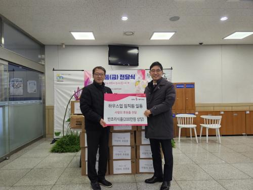 [¿¡ÄÚȯ°æÀϺ¸ ½ÃÈï½Ã=À̽ŵ¿±âÀÚ] ½ÃÈï½Ã ¸ÅÈ­µ¿¿¡ ÀÖ´Â ¸¶·í¹Ù´Ú ½Ã°ø Àü¹®¾÷üÀÎ ¡®ÇϿ콺¾÷¡¯Àº Áö³­ 6ÀÏ ¸ÅÈ­µ¿ ÇàÁ¤º¹Áö¼¾ÅÍ¿¡ ¹æ¹®ÇØ ¸ðµç ÀÓÁ÷¿øÀÌ ¸ð±ÝÇÑ ÈÄ¿ø±ÝÀ¸·Î ¸¶·ÃÇÑ ¹ÝÁ¶¸®½Ä ½Äǰ ÃÑ 600¿© °³(200¸¸ ¿ø »ó´ç)¸¦ Àü´ÞÇß´Ù. ÇϿ콺¾÷Àº ¸Å³â Áö¿ª»çȸ¡¦