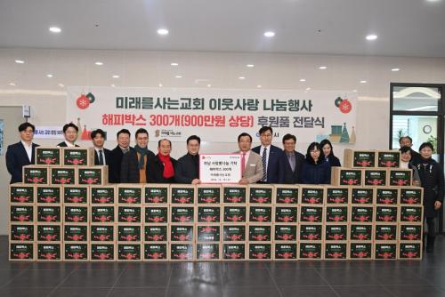 [¿¡ÄÚȯ°æÀϺ¸ Çϳ²½Ã=À̽ŵ¿±âÀÚ] Áö³­ 18ÀÏ ¹Ì»ç3µ¿ ¼ÒÀç ¹Ì·¡¸¦»ç´Â±³È¸´Â ¿¬¸»À» ¸Â¾Æ Çϳ²½Ã¿¡ ÇØÇǹڽº 300°³¸¦ ±âºÎÇÏ¸ç ±âŹ½ÄÀ» °¡Á³´Ù. ÇØÇǹڽº´Â ´Ù¾çÇÑ »ýÇÊǰÀÌ ´ã±ä »óÀÚ·Î, Áö¿ª»çȸ ¼Ò¿ÜµÈ ÀÌ¿ôµé¿¡°Ô Çູ°ú À§·Î¸¦ ÀüÇϰíÀÚ ÁغñµÈ ±âŹǰÀÌ´Ù. ÀÌ¡¦