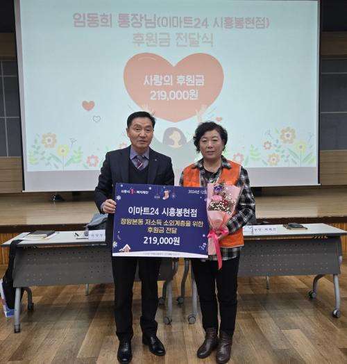 [¿¡ÄÚȯ°æÀϺ¸ ½ÃÈï½Ã=À̽ŵ¿±âÀÚ] À̸¶Æ®24 ½ÃÈïºÀÇöÁ¡Àº Áö³­ 24ÀÏ Á¤¿Õº»µ¿ Áö¿ª»çȸº¸ÀåÇùÀÇü¿¡ ÈÄ¿ø±Ý 21¸¸ 9õ ¿øÀ» Àü´ÞÇß´Ù. ÆíÀÇÁ¡À» ¿î¿µ ÁßÀÎ ÀÓµ¿Èñ ´ëÇ¥´Â Á¤¿Õº»µ¿ ÅëÀåÀ¸·Î À§ÃËµÇ¾î µ¶°Å³ëÀÎ ¾ÈºÎ È®ÀÎ, º¹Áö »ç°¢Áö´ë ¹ß±¼ µî Áö¿ª »çȸ º¹ÁöÁõÁø¡¦