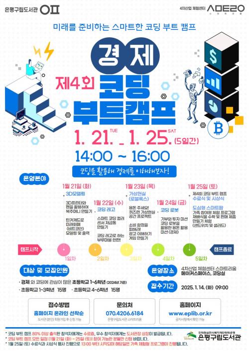 [¿¡ÄÚȯ°æÀϺ¸ ÀºÆò±¸=À̽ŵ¿±âÀÚ] ÀºÆò±¸´Â ¿À´Â 21ÀϺÎÅÍ 25ÀϱîÁö 5Àϰ£ ÃʵîÇб³ °Ü¿ï¹æÇÐÀ» ¸Â¾Æ 4Â÷»ê¾÷ üÇè¼¾ÅÍ ½º¸¶Æ®¸®¿ò¿¡¼­ ´Ü±â°£¿¡ ÄÚµù Áö½ÄÀ» ¹è¿ï ¼ö ÀÖ´Â ¡®ÄÚµù ºÎÆ® Ä·ÇÁ¡¯¸¦ ¿î¿µÇÑ´Ù°í ¹àÇû´Ù. ¡®ÄÚµù ºÎÆ® Ä·ÇÁ¡¯´Â ȸÂ÷º° »õ·Î¿î ÁÖÁ¦¸¦ ¼±Á¤¡¦