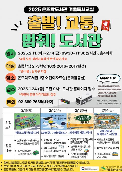 [¿¡ÄÚȯ°æÀϺ¸ ÀºÆò±¸=À̽ŵ¿±âÀÚ] ÀºÆò±¸´Â ±¸¸³ Àº¶ß¶ôµµ¼­°ü¿¡¼­ ³»´Þ 11ÀϺÎÅÍ 14ÀϱîÁö ¡®Ãâ¹ß! ±³Åë, ¸ØÃç! µµ¼­°ü¡¯ °Ü¿ï µ¶¼­±³½Ç ÇÁ·Î±×·¥À» ¿î¿µÇÑ´Ù°í ¹àÇû´Ù. À̹ø °Ü¿ï µ¶¼­±³½ÇÀº ÃʵîÇб³ 2Çг⿡¼­ 3Çгâ Çлý 10¸íÀ» ´ë»óÀ¸·Î ÁøÇàµÈ´Ù. ¿À´Â 24ÀÏ ¡¦